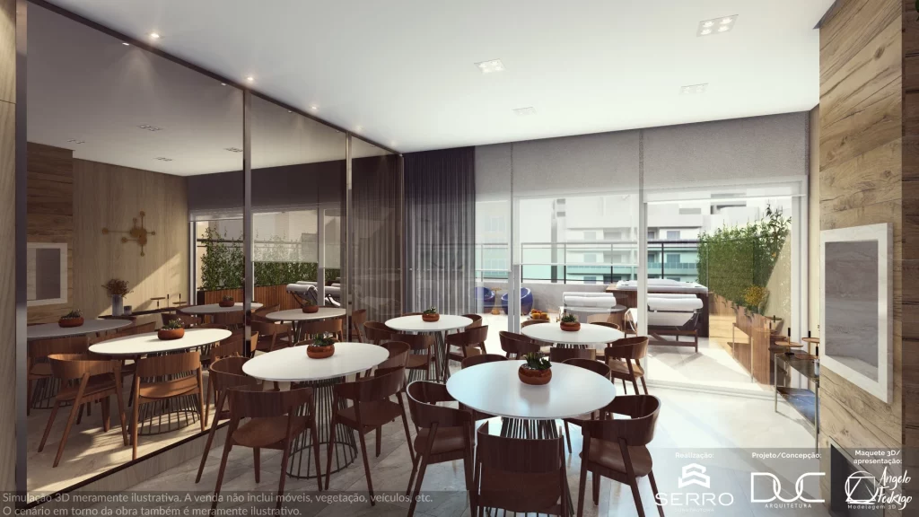 Possui acabamento alto padrão, com diferencial de pé direito com 3 metros de altura, porcelanato nas áreas comuns, piso vinílico na área intima, teto em gesso com iluminação em LED, persianas automatizadas, fechadura digital, espera para ar split, atenuação acústica, tanto entre lages como nas paredes, através da utilização do material de alta performace: o bloco celular, alem de aquecimento a gás. O prédio conta com um salão de festas equipado, SPA com aquecimento, playground, espaço pet e academia.